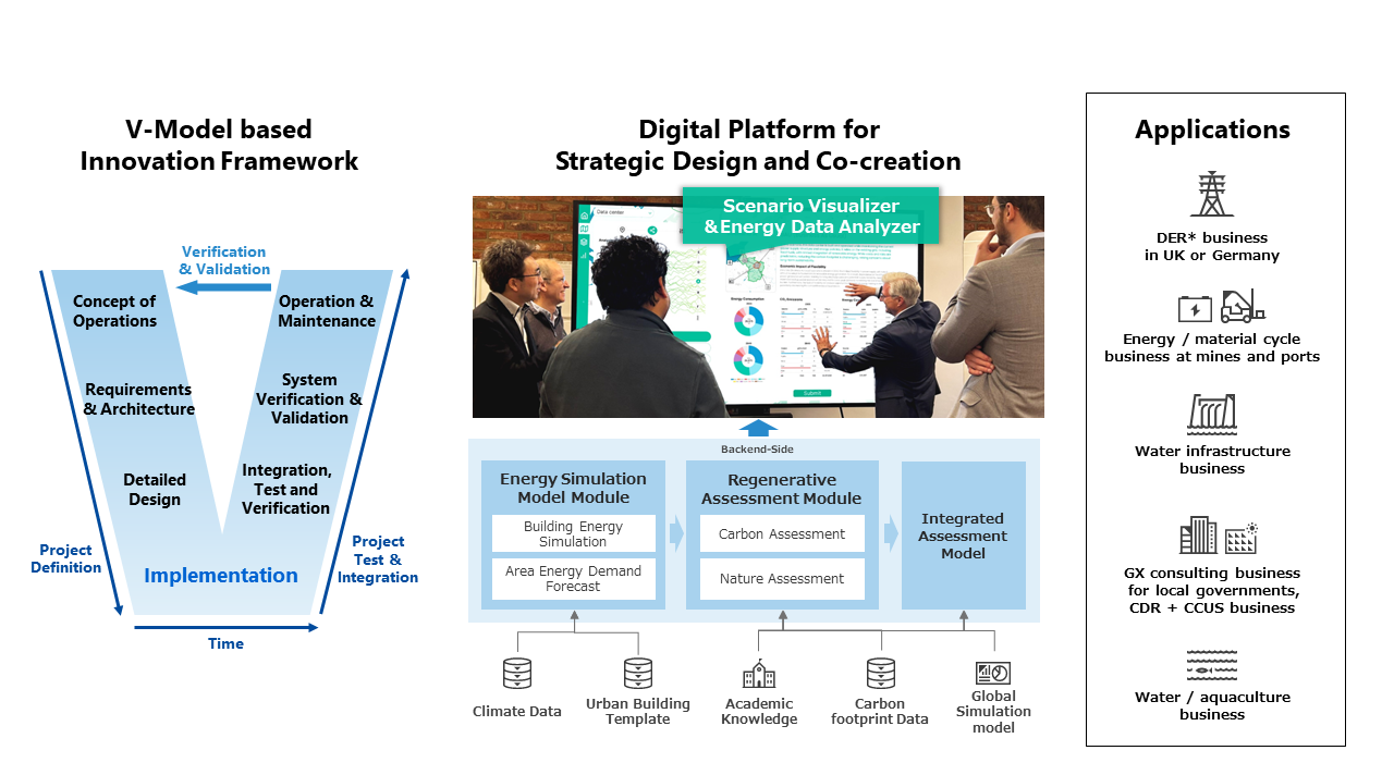 These encompass next generation energy grids, utilisation of distributed energy resources, water circulation, hydrogen and CCUS (Carbon Capture, Utilisation and Storage), as well as sector coupling and multi-infrastructure solutions. In each of these fields, we actively engage in innovation design, co-creation activities, business analysis, and support for evidence-based policymaking (EBPM) in regional and corporate strategy formulation.
